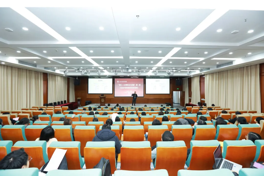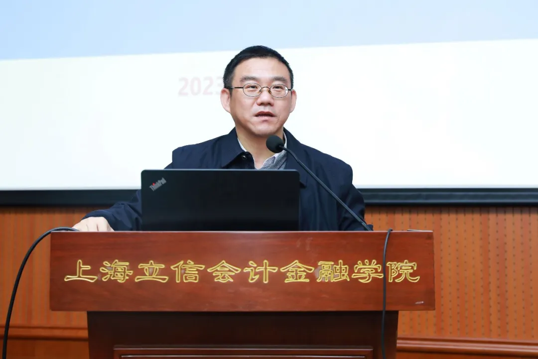 2023年12月15日上午,“徐汇-立信财会大讲堂”第一期《企业内部控制与风险管理》圆满举行,本次讲座由上海市徐汇区财政局和上海立信会计金融国际财经学院联合举办,邀请到上海立信会计金融学院客座教授、国药控股财务总监、正高级会计师吴轶伦博士担任讲座培训专家。上海市财政局会计处副处长朱刚、上海市徐汇区财政局副局长李松波、上海市徐汇区财政局会计科科长秦维,以及徐汇区商务委、徐汇区科委、徐汇区金融办相关领导出席本次讲座。讲座由国际财经学院副院长吴昀桥主持。