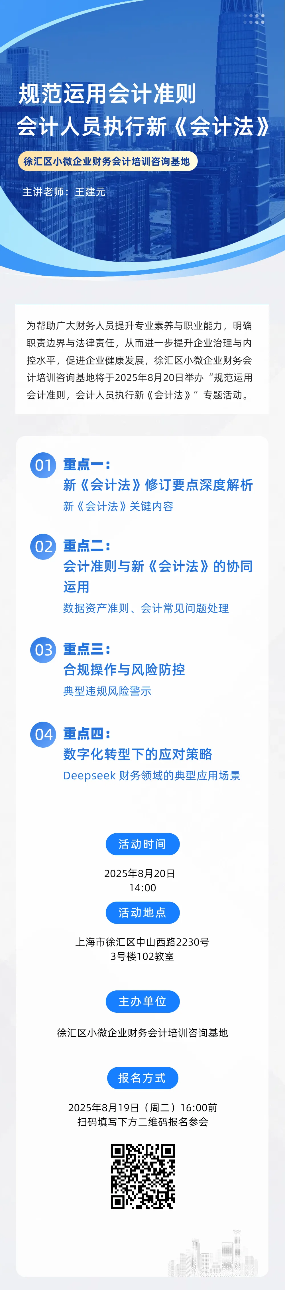 徐汇区小微基地举办“规范运用会计准则,准确执行新《会计法》”专题讲座